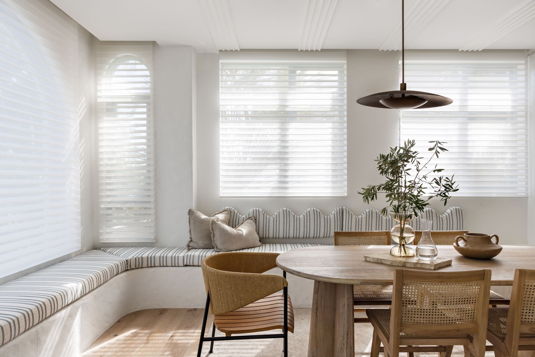 Clean lines, gentle structure, and subtle texture. Our soft shades, including Luxaflex designs, create a sense of calm and balance in any room.