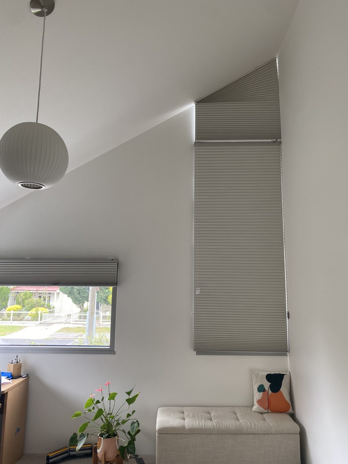 The project was truly memorable with a desires to provide complete shading and privact for a triangular shapes window. Our creative interior design consultants delivered a solution astounding the home owner.