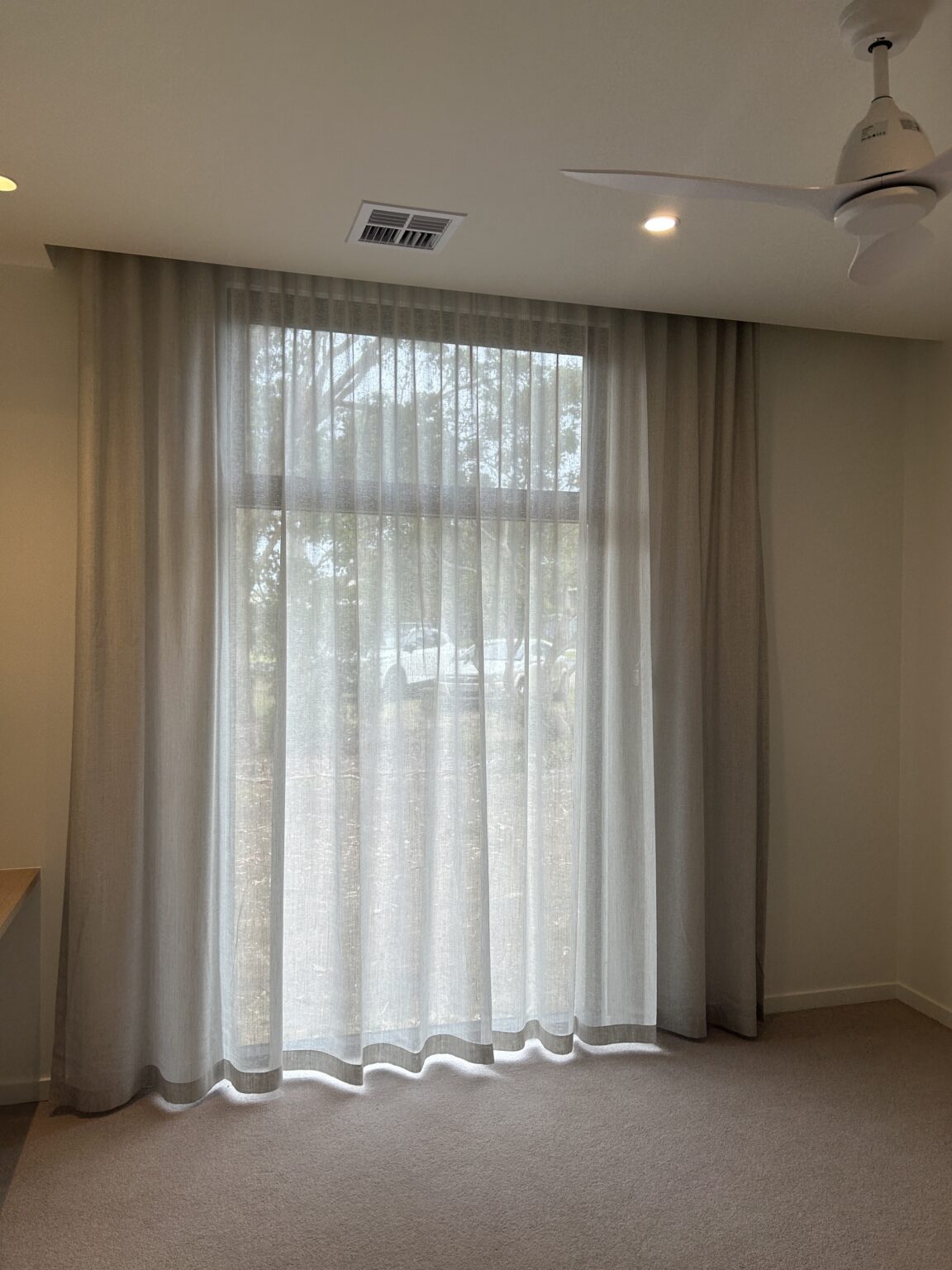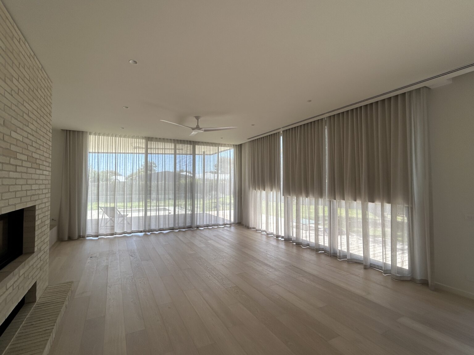 Window furnising and external shading at Flinders ranges. Blinds, Shutters and Curtains and external Awnings are all used interchangeably, with high quality fabrics a must have for the premium interior design houses in Flinders on the Mornington Peninsula.
