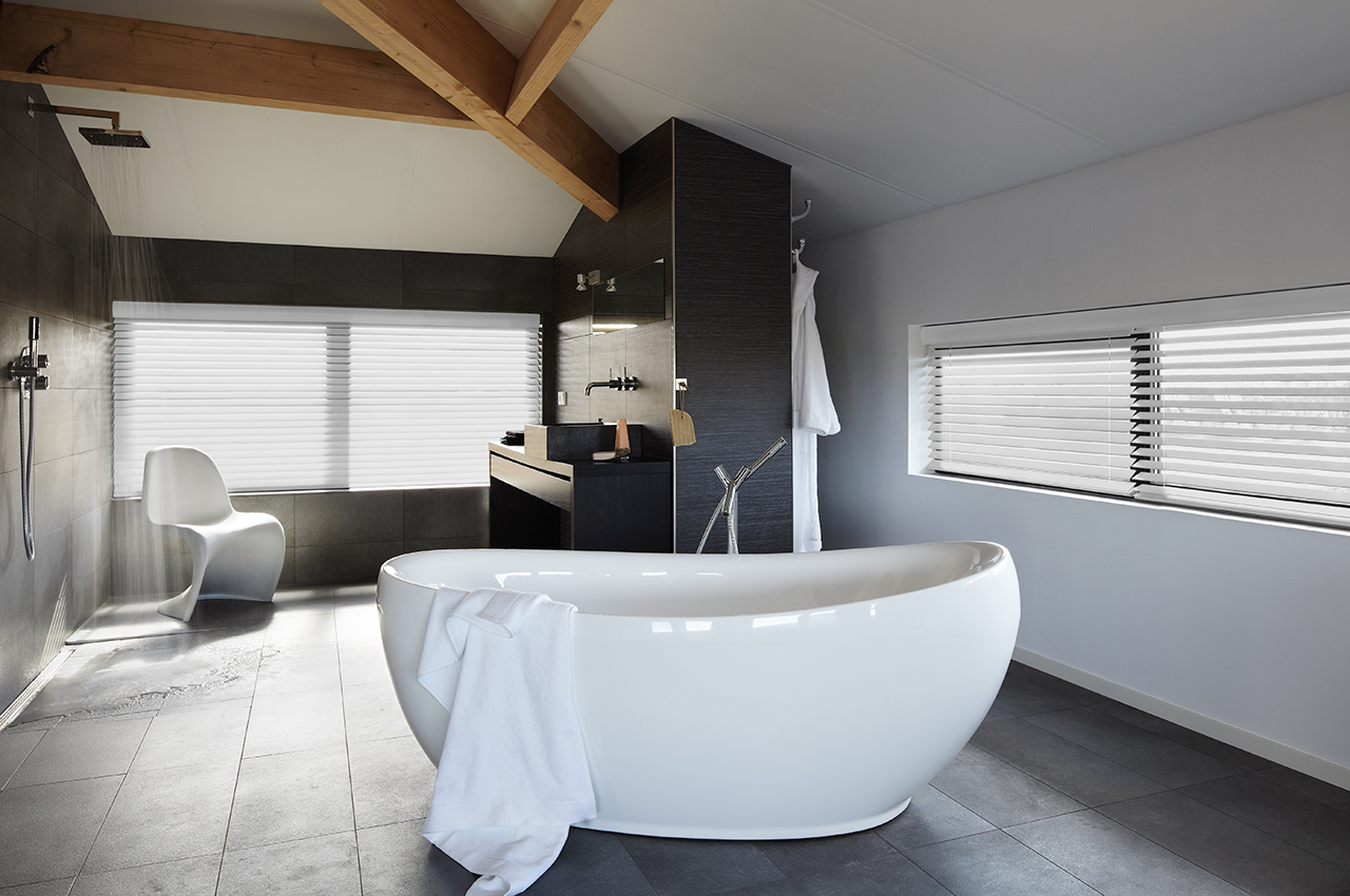 While privacy is of the utmost concern when it comes to window furnishings for bathrooms, you also need to consider their ability to withstand exposure to moisture and humidity. The last thing you want is for your brand-new blinds to become warped or stained.