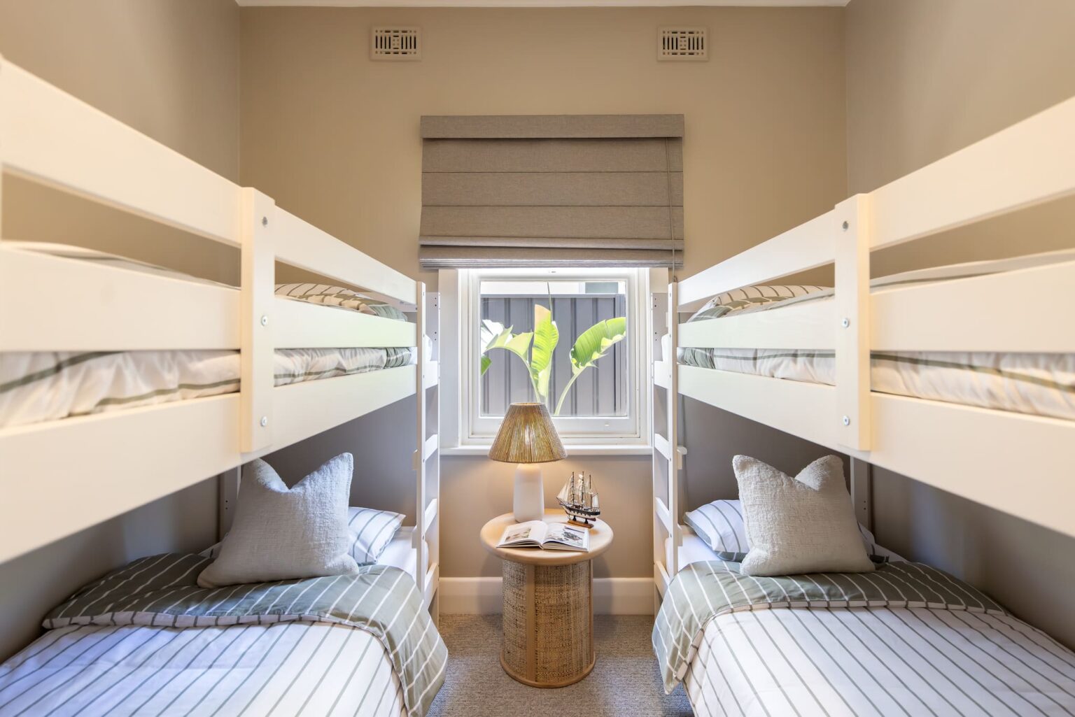 Roman blinds are great insulators – and they can be lifted above the window so natural light isn’t compromised. They’re neat when raised, acting as a pelmet which completes the look of the window.