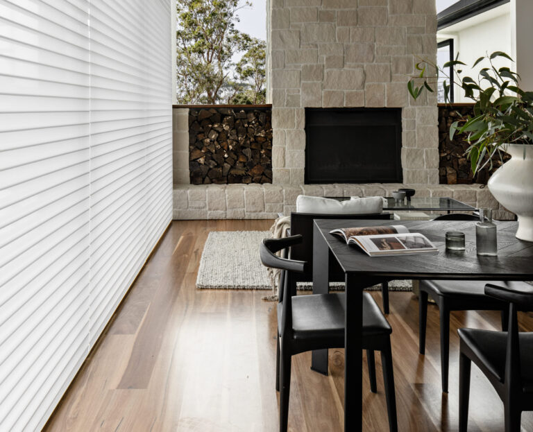 The innovative dust resistant material used allows you to see outside, while restricting the view from the street for privacy. The Silhouette system can be opened for a full focus view, closed for privacy or tilted for light control. It is a clever blend of on-trend design aesthetics and practicality.